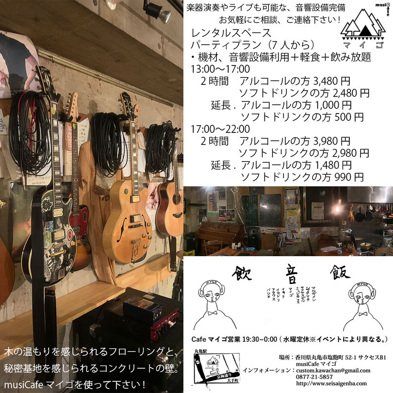 musiCafeマイゴでは、音響設備付きの【貸切プラン】をご用意しています。