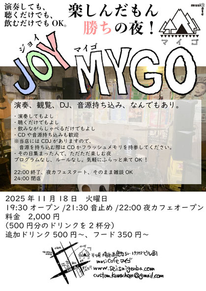 ルールなし。演奏しても、聴くだけでも、飲むだけでもOK。楽しんだもん勝ちの夜!